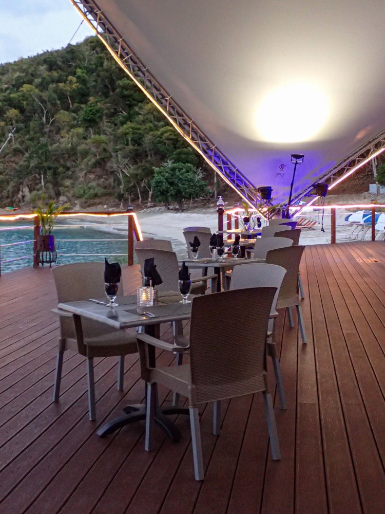 Days spent on boat are almost guaranteed to be a full day . Ocean’s Seven is family oriented Beach Club with seaside dining, and a bar specializing in tropical drinks , located at Great Harbor, Peter Island .